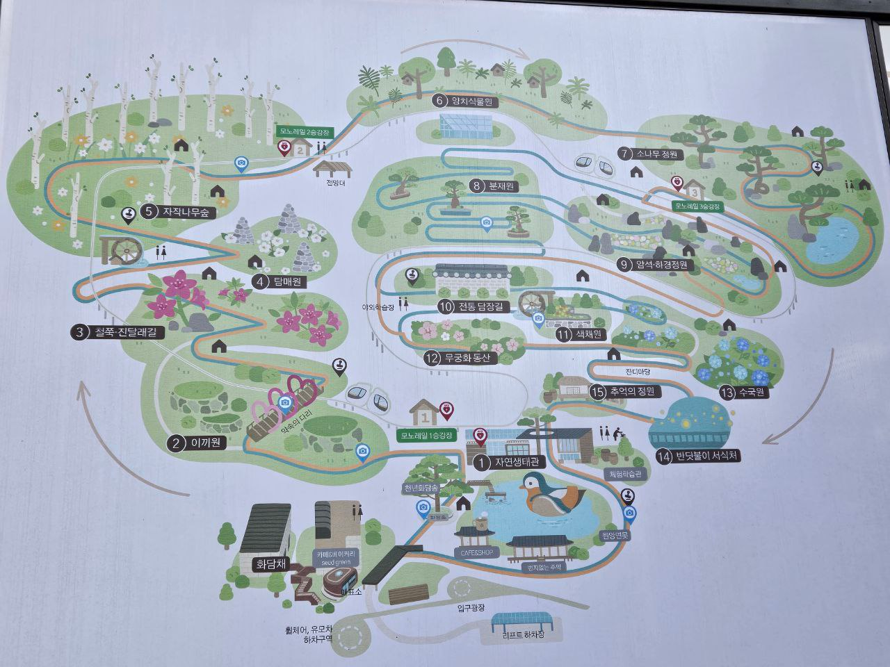 입장하고 나면 화담숲 코스 안내 지도판이 있습니다. 거기에 카메라 모양으로 포토존이 표시되어 있으니 잘 기억해서 인생샷 남기고 오시면 좋을 것 같습니다. 그 외에도 숲길이나 담장 쪽이 이쁘기 때문에 사진 찍을 곳이 많으니 잘 지켜보세요 ㅎㅎ
